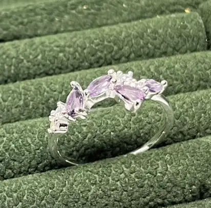 Anel pedrinhas minimalistas lilás banhado a prata 20/21