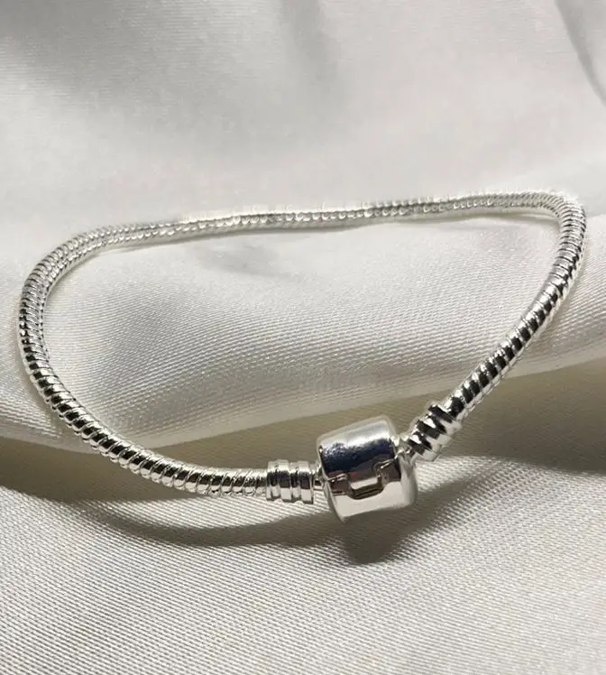 Elegância que se adapta a você: Pulseira para berloque com extensor, banhada a prata. Perfeita para contar suas histórias com estilo e conforto.